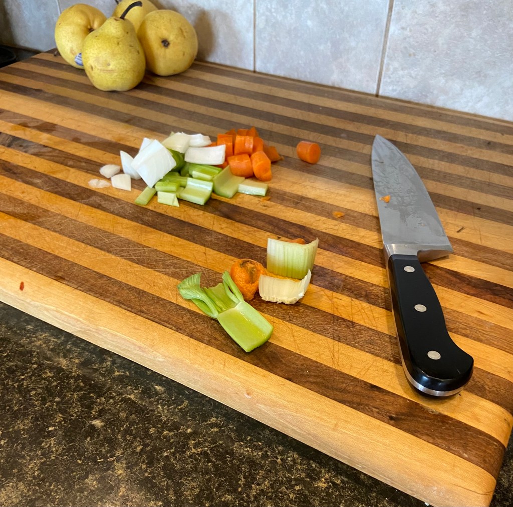 Vegetables ready to flavor Marcus’ Chicken Noodle Soup and pears to sweeten a smoothie.